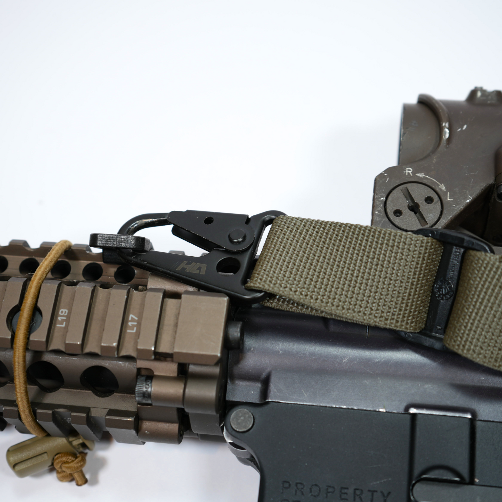 These HK-style snap hooks are a reliable way to mount your sling to your rifle.