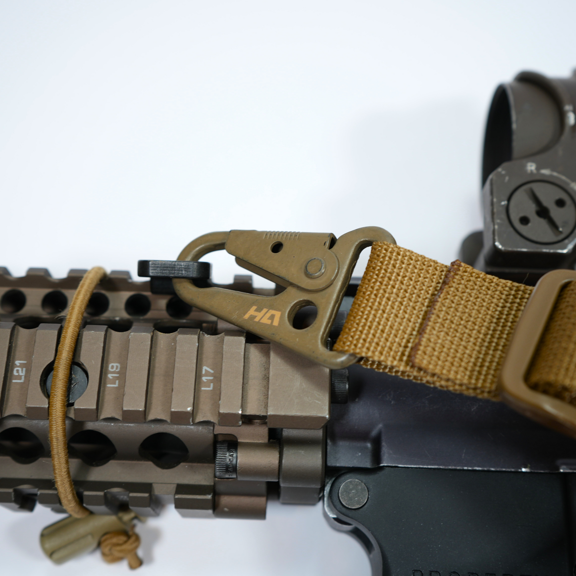 These HK-style snap hooks are a reliable way to mount your sling to your rifle.